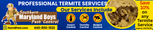 If you live in Southern Maryland and need an exterminator for termites, give us a call. We service the tri-county area including st marys county, Charles county, and Calvert county. We will get it done!